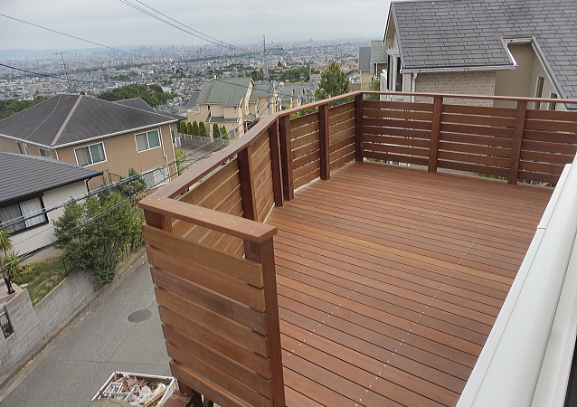高台の高床ウッドデッキ 足元は 頑丈に 頑丈に