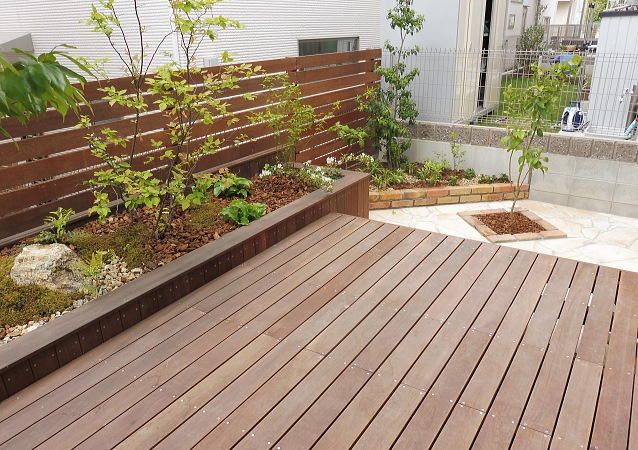 大阪市 鶴見 造園リフォーム施工例:古レンガのテラスの庭園