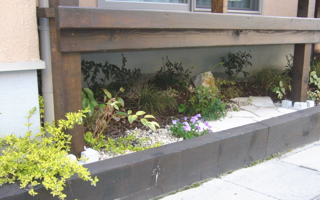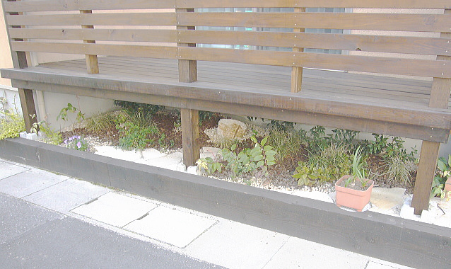 よくありますが ウッドデッキの床下にお庭をつくるのはいかがですか?