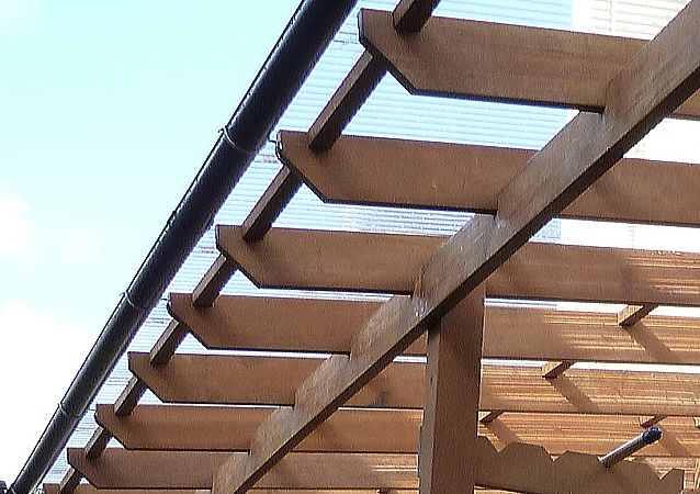 ウリン材のパーゴラの波板は最強度でしかも 下からはあまり目立ちません