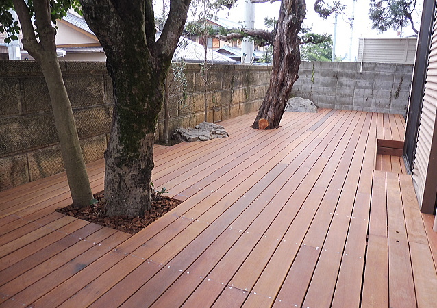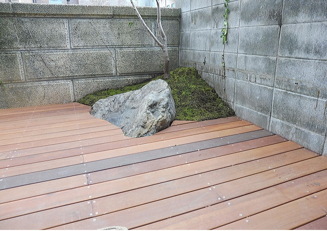 和風庭園の一部を残し ウリン材のウッドデッキに改装。