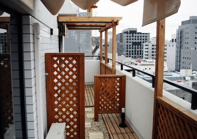 マンションの10Fベランダに実用と景観を兼ねたベランダガーデンです
