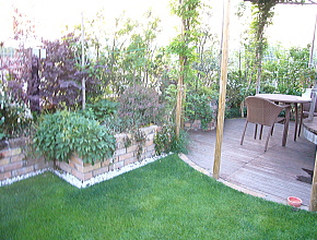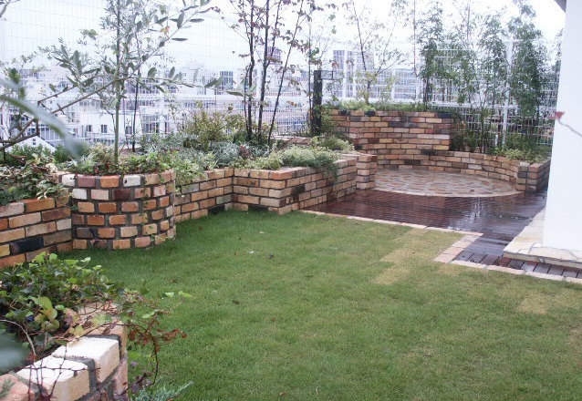 大阪市 鶴見 造園リフォーム施工例:古レンガのテラスの庭園