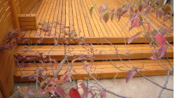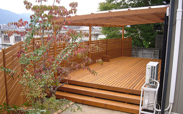 雨・夜露がかからないため、高耐久ウッドデッキになりました。
