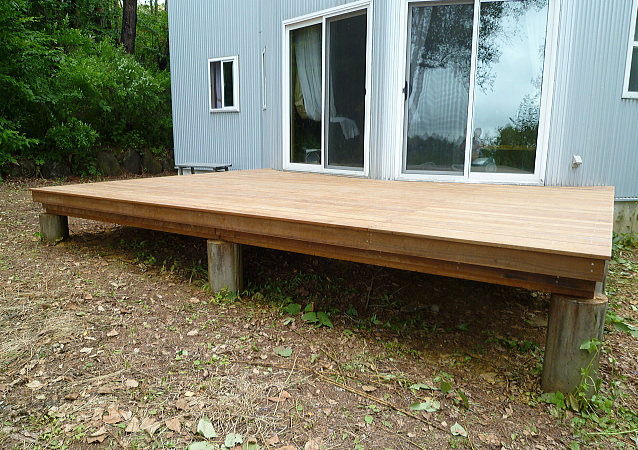 山梨県の小淵沢の別荘地でのウリンウリンウッドデッキ