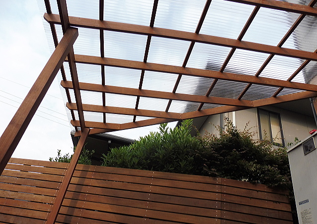 作りましたから変形のウッドデッキパーゴラとなりました。