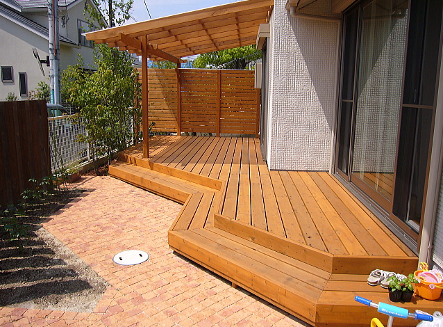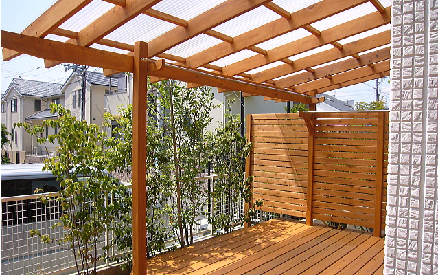 オープンな感覚のパーゴラ付のウッドデッキになりました