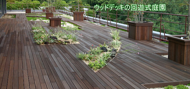 緑とウッドデッキで彩られた味わい深いお庭。 |